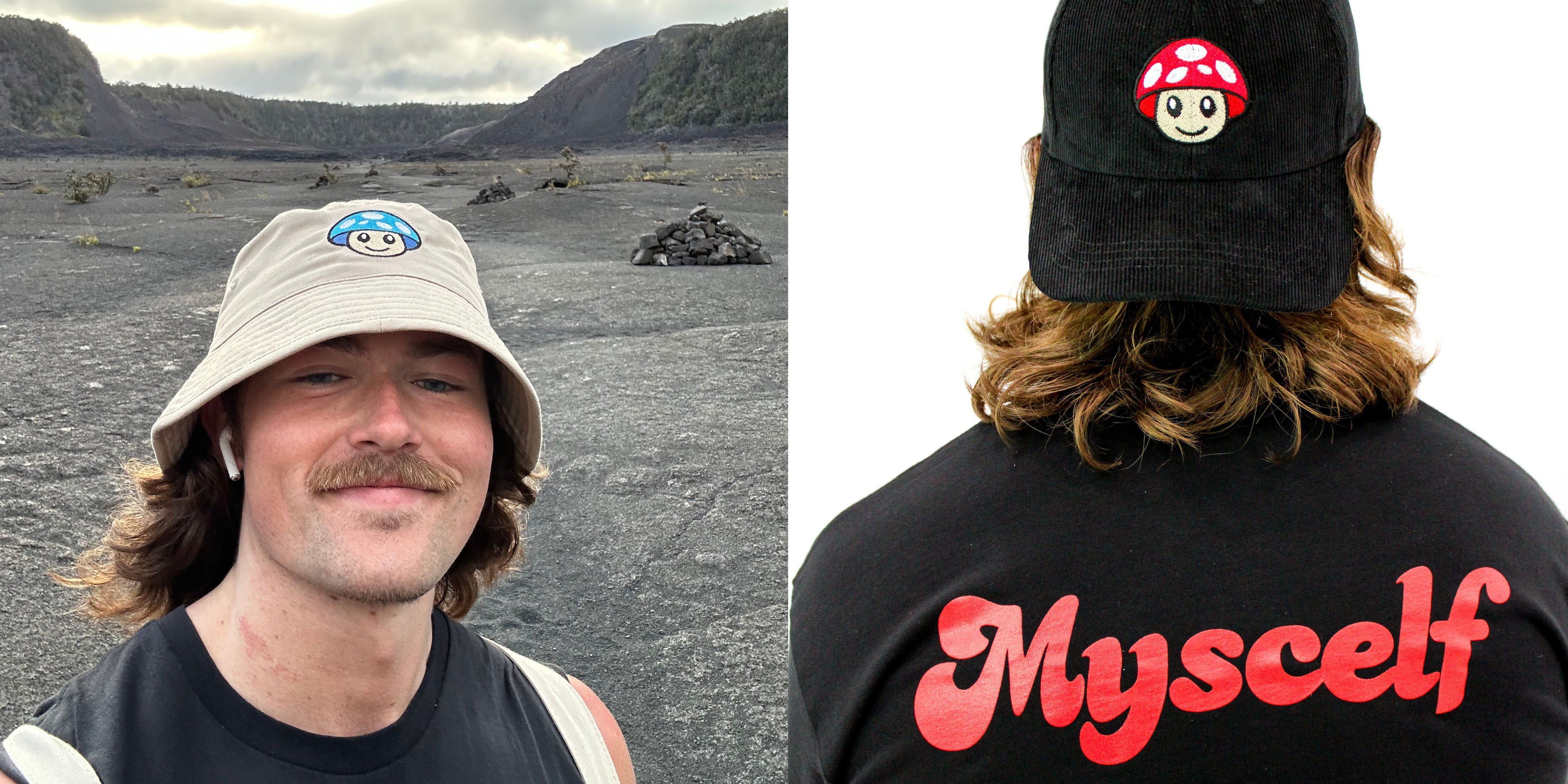 Myscelf Organic Cotton Heavyweight Black T-Shirt / Red Mushroom