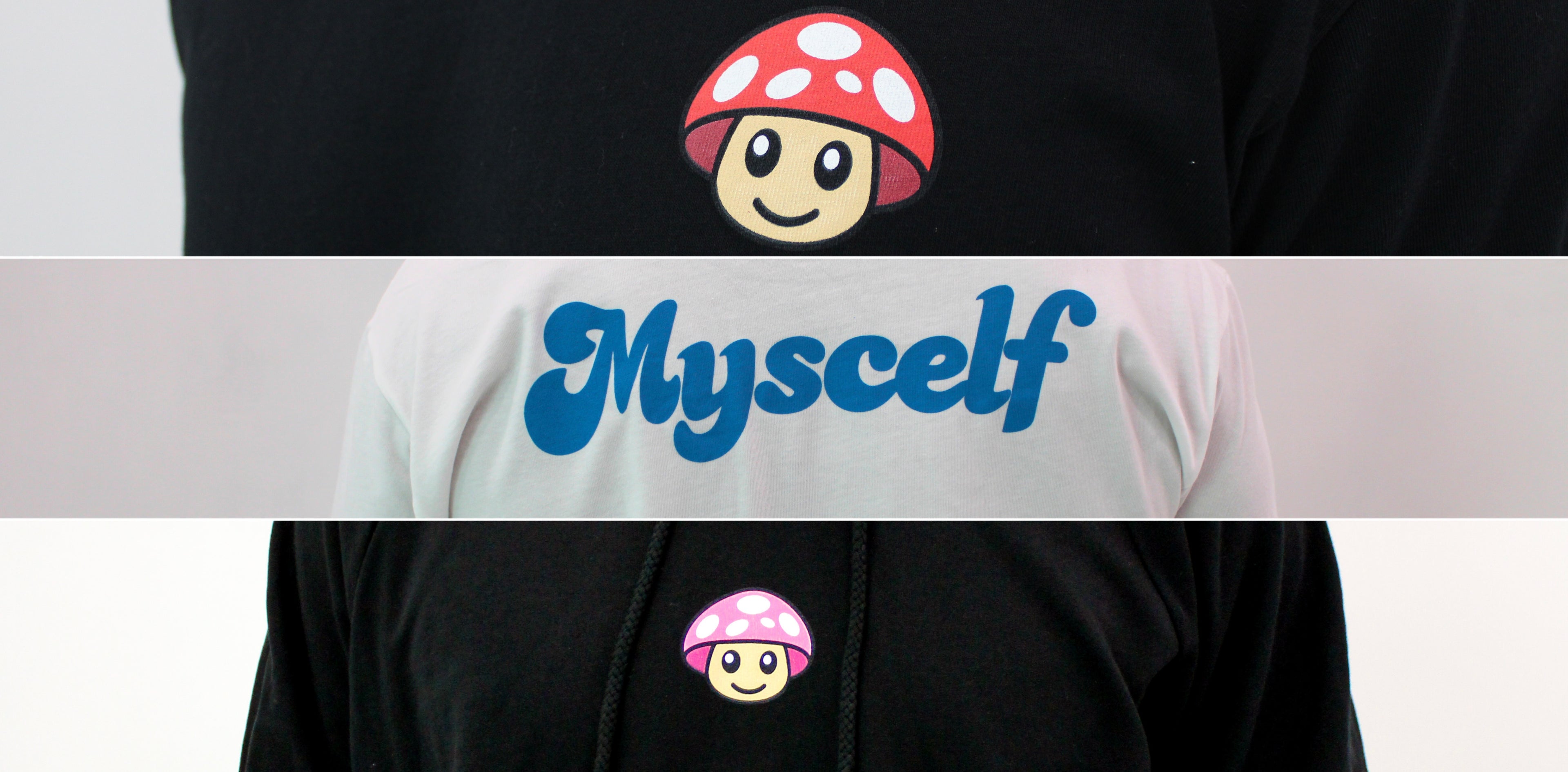 Myscelf Organic Cotton Heavyweight Black T-Shirt / Pink Mushroom