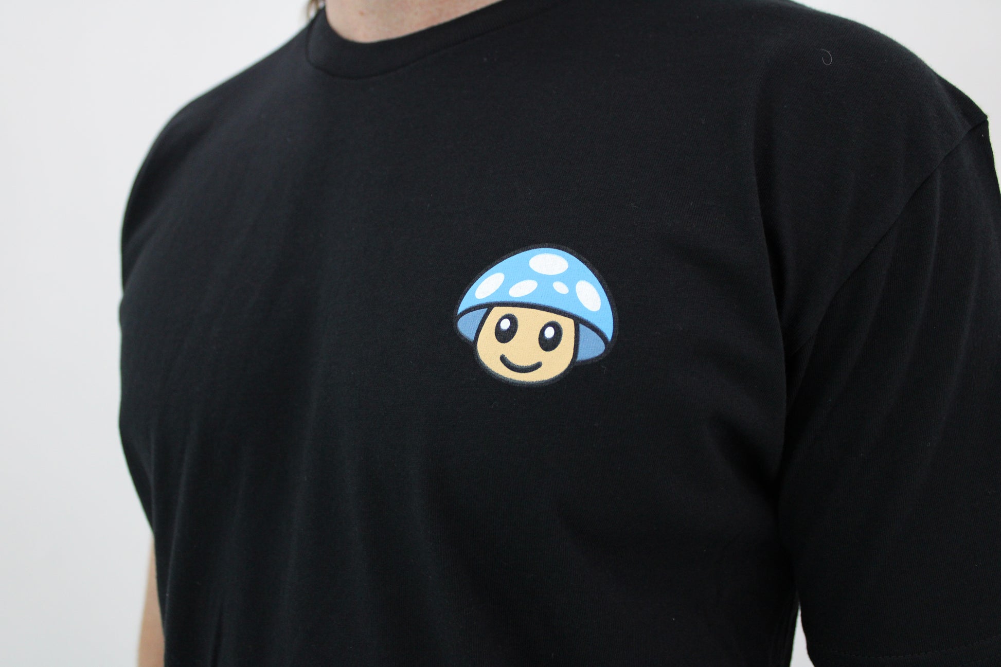Myscelf Organic Cotton Heavyweight Black T-Shirt / Blue Mushroom
